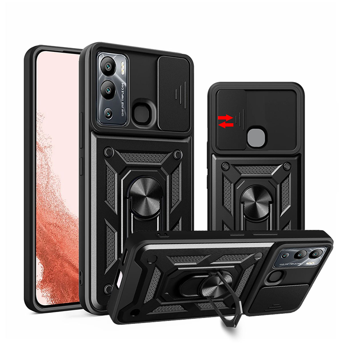 Capa Protetora Blindada com Suporte e Tampa de Lente – Alta Proteção e Funcionalidade;